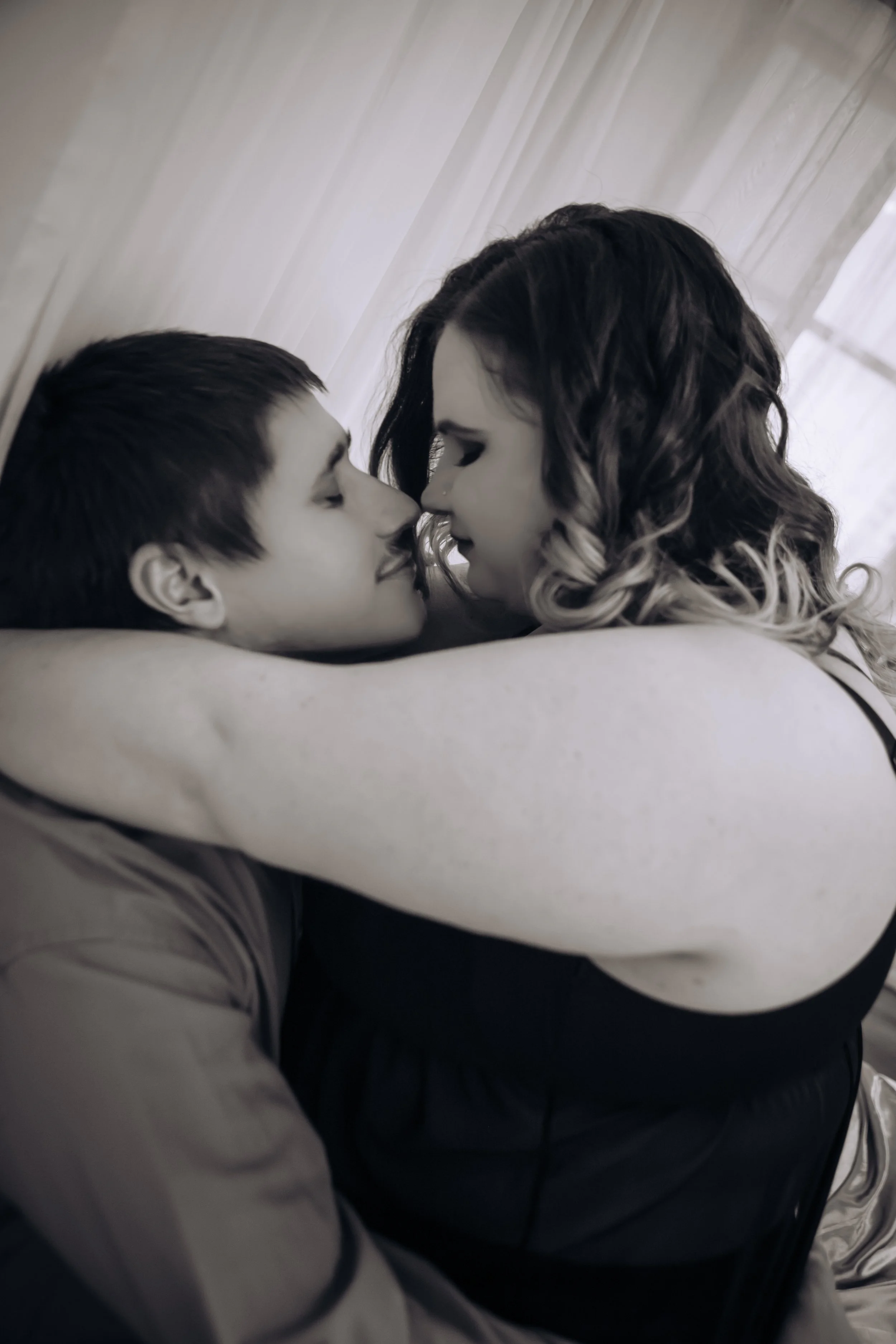 Mr. E & Ms. L did a noir styled couples boudoir photoshoot. They did 1 set each and 2 sets together! They loved the date night feeling of their couples boudoir session!