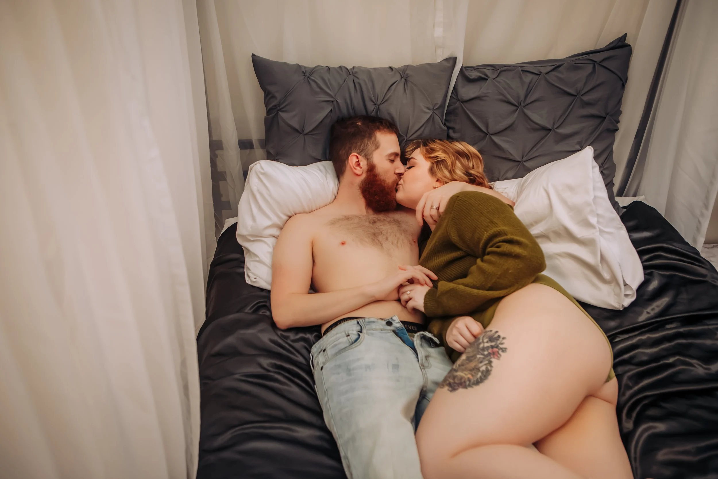 Mr. T & Mrs. S had a cute & romantic couples boudoir photoshoot and did their whole session together! They loved getting to celebrate their 1st Wedding Anniversary in the Intimate Portrait Studio!